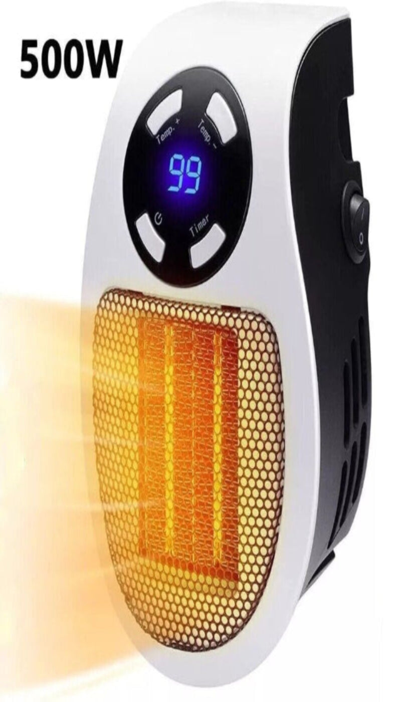 Mini Stufetta Portatile da 500W, la soluzione ideale per riscaldare rapidamente piccoli ambienti con il minimo consumo. Compatta, leggera e pratica (18 cm di altezza, 11 cm di larghezza e 8 cm di profondità), si adatta perfettamente a qualsiasi spazio e può essere spostata con facilità grazie alla spina integrata.